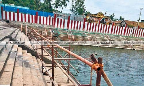 * குளக்கரையை சுற்றி ஐந்து தற்காலிக பெண்கள் உடை மாற்றும் இடம் அமைக்கப்பட்டுள்ளது
