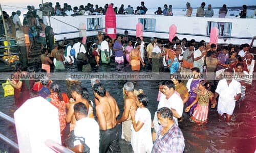தேவிபட்டினம்: தேவிபட்டினத்தில் நவகிரகங்கள் கடலுக்குள் அமைந்துள்ளதால் நவபாஷாணம் மிகவும் பிரசித்தி பெற்று விளங்குகிறது. நேற்று ஆடி அமாவாசையை முன்னிட்டு நவபாஷாணத்தில் புனித நீராட பல்லாயிரக்கணக்கான பக்தர்கள் குவிந்தனர். கடற்கரை முன்பு மரக்கட்டைகள் மூலம் அமைக்கப்பட்டிருந்த பேரிகார்டுகள் மூலம் பக்தர்கள் நெரிசல் இன்றி கடலுக்குள் சென்று புனித நீராடினர். முன்னோர்களுக்கு தர்ப்பணம் செய்து வழிபாடு செய்தனர். இந்து அறநிலையத் துறை சார்பில் அர்ச்சகர்கள் நியமிக்கப்பட்டு பரிகார பூஜைகள் செய்யப்பட்டன. அறநிலைய துறை பரமக்குடி உதவி ஆணையர் ராமசாமி, தக்கார் இளங்கோ ஆகியோர் பக்தர்களுக்கு தேவையான வசதிகளை செய்திருந்தனர். ராமநாதபுரம் உதவி எஸ்.பி., சர்வேஸ்ராஜ் தலைமையில் பாதுகாப்பு ஏற்பாடுகள் செய்யப்பட்டிருந்தது.