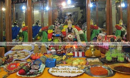 ஸ்ரீரங்கம் : ஸ்ரீரங்கம் ரங்கநாதர் கோவில் பரமபதநாதர் சன்னதியில், ஆண்டாளுக்கு நடக்கும் ஆடிப்பூர உற்சவத்தில், ஆறாம் நாளான நேற்று, அரங்கர், ஆண்டாள் திருக்கல்யாண காட்சி தத்ரூபமாக காட்சிக்கு வைக்கப்பட்டிருந்தது.
