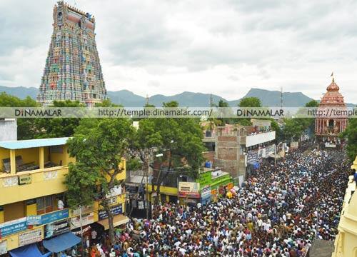 பக்தர்கள் தரிசனம்: அங்கு ரகுராமன் மற்றும் விஜயபாஸ்கரபட்டர்கள் சிறப்பு பூஜைகள் செய்தனர். 8.05 மணிக்கு கோவிந்தா...கோபாலா கோஷத்தின் மத்தியில் பக்தர்கள் வடம்பிடித்து இழுக்க ரதவீதிகள் வழியாக வலம் வந்த தேர் 11 .15 மணிக்கு நிலைக்கு வந்தது. பக்தர்கள் நீண்டநேரம் வரிசையில் காத்திருந்து தேரில் ஏறியப்படி ஆண்டாள், ரெங்கமன்னாரை தரிசனம் செய்தனர்.