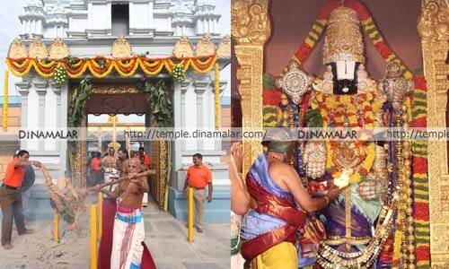 இதற்கு வரும் பக்தர்கள், ஏழுமலையானை வழிபட, விஜயவாடாவில் மாதிரி கோவிலை தேவஸ்தானம் ஏற்படுத்தியது. நேற்று காலை, 7:30 மணி முதல் 9:00 மணிக்குள், கிருஷ்ணா நீர் கொண்டு மகாசம்ரோட்சம் செய்து ஏழுமலையான் சிலையை கோவிலுக்குள் பிர திஷ்டை செய்தது. முதலில், காஞ்சி ஜெயேந்திர சரஸ்வதி சுவாமிகள் ஏழுமலையானை தரிசித்தார். அதன்பின், பக்தர்கள் தரிசனத்திற்கு அனும திக்கப்பட்டனர். இங்கு, தினமும் சுப்ரபாதம், தோமாலை, அர்ச்சனா, நைவேத்தியம் உள்ளிட்ட சேவைகள், ஏழுமலையானுக்கு நடத்தப்பட உள்ளன.