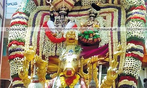 திருவல்லிக்கேணி: எல்லையம்மன் ரேணுகா பரமேஸ்வரி கோவிலில், ஆடி மாத பிரம்மோற்சவத்தை முன்னிட்டு, அதிகார நந்தி வாகனத்தில் சிவனும் பார்வதியும் திருவீதி உலா சென்று பக்தர்களுக்கு நேற்று அருள்பாலித்தனர். சென்னை, திருவல்லிக்கேணி எல்லையம்மன் ரேணுகா பரமேஸ்வரி திருக்கோவிலில், ஆடி மாத பிரம்மோற்சம், 4ம் தேதி தொடங்கி வெகு விமரிசையாக கொண்டாடப்பட்டு வருகிறது. விழாவின் சிறப்பாக நேற்று, நந்தி வாகனத்தில் சிவனும் பார்வதியும் திருவீதி உலா சென்று பக்தர்களுக்கு அருள் பாலித்தனர். திருவீதி உலாவின் போது, தெருவில் கூடியிருந்த பக்தர்கள் சுவாமிக்கு பூ, வாழை, வெற்றிலை பாக்கு வைத்து படைத்தனர். இரவு, தொட்டி உற்வசம் நடந்தது. இன்று இரவு நாக வாகனத்தில் சுவாமி எழுந்தருளி பக்தர்களுக்கு அருள் பாலிக்கவுள்ளார்.