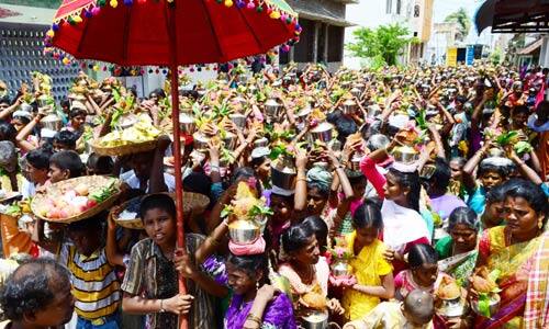 ஊர்வலமாக கொண்டுவரப்பட்டு, அம்மனுக்கு அபிஷேகம் செய்யப்பட்டது. மாலையில், 1,008 குத்துவிளக்கு பூஜை நடந்தது. நாகபூண்டி உலகாத்தம்மன் கோவில் ஆடி பெருவிழா, (ஆக.,12), காலை பால் குடங்கள் ஊர்வலத்துடன் துவங்கியது. காலை, 11:30 மணிக்கு, மூலவர் அம்மனுக்கு அபிஷேகம் செய்யப்பட்டது. மாலை, 6:00 மணிக்கு, அம்மன், ராஜேஸ்வரி அலங்காரத்தில் வீதியுலா எழுந்தருளினார்.