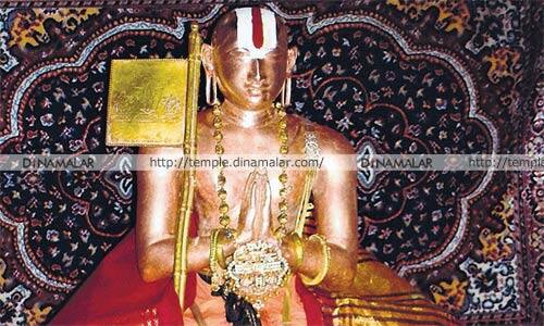 வெந்நீர், போர்வை, சந்தனம்... ஸ்ரீபெரும்புதுாரில் உள்ள ராமானுஜர் திருமேனி ஆண்டுதோறும் ஐப்பசி மாதம், மூலம் நட்சத்திரம் அன்று ஸ்ரீ மணவாள மாமுனிகளின் அவதார திருநாள் தொடங்கி, தை மாதம் ஹஸ்தம் நட்சத்திரம் அன்று, ஸ்ரீ கூரத்தாழ்வாரின் அவதார தினம் வரை உள்ள இடைப்பட்ட மழைக் காலம் மற்றும் குளிர் காலங்களில், ராமானுஜரின் உற்சவ திருமேனிக்கு திருமஞ்சனம் செய்யும் போதும், திருவாராதனம் செய்யும் போதும், வெந்நீரை உபயோகிக்கின்றனர்.மேலும், அந்த காலங்களில், இரவு நேரங்களில் ராமானுஜரின் திருமேனிக்கு குளிராமல் இருப்பதற்கு, சால்வைகள், ரஜாய் எனப்படும் போர்வைகள் சாற்றப்பட்டு மிகவும் பாதுகாக்கின்றனர். இதேப்போல் கோடை காலத்தில் மிகவும் குளிர்ந்த, துாய்மையான நீரில் திருமஞ்சனம் செய்கின்றனர்.அதிக வெப்பம் உள்ள காலங்களில் வெப்பத்தால் ஏற்படும் சூட்டை தணிக்க, அவருடைய திருமேனியின் பின்புறம் சந்தனம் பூசப்படுகிறது. இந்த மரபு, தொடர்ந்து பல நுாறு ஆண்டுகளாக மிகவும் சிறப்பாக போற்றி பாதுகாத்து வழிபாடு செய்யப்பட்டு வருகிறது.