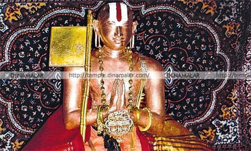 வெந்நீர், போர்வை, சந்தனம்...: ஸ்ரீபெரும்புதுாரில் உள்ள ராமானுஜர் திருமேனி ஆண்டுதோறும் ஐப்பசி மாதம், மூலம் நட்சத்திரம் அன்று ஸ்ரீ மணவாள மாமுனிகளின் அவதார திருநாள் தொடங்கி, தை மாதம் ஹஸ்தம் நட்சத்திரம் அன்று, ஸ்ரீ கூரத்தாழ்வாரின் அவதார தினம் வரை உள்ள இடைப்பட்ட மழைக் காலம் மற்றும் குளிர் காலங்களில், ராமானுஜரின் உற்சவ திருமேனிக்கு திருமஞ்சனம் செய்யும் போதும், திருவாராதனம் செய்யும் போதும், வெந்நீரை உபயோகிக்கின்றனர். மேலும், அந்த காலங்களில், இரவு நேரங்களில் ராமானுஜரின் திருமேனிக்கு குளிராமல் இருப்பதற்கு, சால்வைகள், ரஜாய் எனப்படும் போர்வைகள் சாற்றப்பட்டு மிகவும் பாதுகாக்கின்றனர். இதேப்போல் கோடை காலத்தில் மிகவும் குளிர்ந்த, துாய்மையான நீரில் திருமஞ்சனம் செய்கின்றனர். அதிக வெப்பம் உள்ள காலங்களில் வெப்பத்தால் ஏற்படும் சூட்டை தணிக்க, அவருடைய திருமேனியின் பின்புறம் சந்தனம் பூசப்படுகிறது. இந்த மரபு, தொடர்ந்து பல நுாறு ஆண்டுகளாக மிகவும் சிறப்பாக போற்றி பாதுகாத்து வழிபாடு செய்யப்பட்டு வருகிறது.
