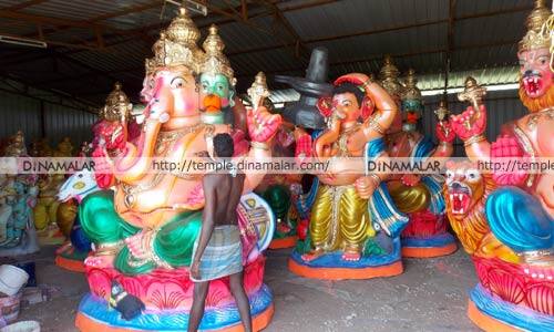 கள்ளக்குறிச்சி: கள்ளக்குறிச்சி அருகே தச்சூரில் விநாயகர் சிலைகள் தயாரிக்கும் பணி மும்முரமாக நடந்து வருகிறது. கள்ளக்குறிச்சியில் ஆண்டுதோறும் விநாயகர் சதுர்த்தி விழா சிறப்பாக கொண்டாடப்படுகிறது. கள்ளக்குறிச்சி நகரம் மற்றும் கிராமப்பகுதிகளில் விநாயகர் சதுர்த்தி விழாவிற்குப்பின், 500க்கும் மேற்பட்ட சிலைகள் கள்ளக்குறிச்சியிலிருந்து ஊர்வலமாக எடுத்துச்சென்று நீர்நிலைகளில் விசர்ஜனம் செய்வது வழக்கம். இதற்கான விநாயகர் சிலைகள் தயாரிக்கும் பணி தச்சூர் பகுதியில், தீவிரமாக நடந்து வருகிறது. பல வண்ணங்களில் மூன்றரை அடியிலிருந்து 15 அடி வரையிலான சிலைகள் இங்கு தயாரிக்கப்படுகிறது. விநாயகர் நின்ற நிலை, அண்ணாமலை, லேட்டஸ்ட் பாகுபலி, வெங்கடாஜலபதி, சிங்க முகம், 3 தலை, யானை, எலி, காளை, மான், ஜான்சிராணி, காளிங்க நந்தனார், பறக்கும் அனுமன் மீது அமர்ந்த விநாயகர் என பல வடிவ சிலைகள் 300க்கும் மேற்பட்ட வடிவில், சிலைகள் இங்கு தயாரிக்கப்பட்டு வருகிறது. கல் மாவு, பேப்பர் மாவு, கிழங்கு மாவு போன்ற பொருட்களில் தயாரிக்கப்படும் சிலைகள், விற்பனைக்கு வைக்கப்பட்டுள்ளன.