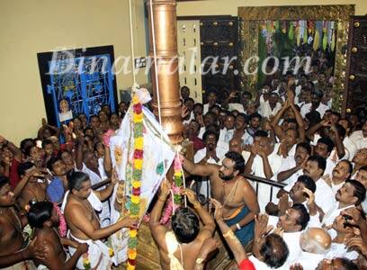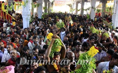 உடன்குடி : குலசேகரன்பட்டணம் முத்தாரம்மன் கோயில் தசரா திருவிழா பக்தர்களின் ஓம் காளி, ஜெய்காளி கோஷத்துடன் கொடியேற்ற நிகழ்ச்சி நடந்தது. இதில் லட்சக்கணக்கான பக்தர்கள் கலந்து கொண்டனர். வரும் 6ம் தேதி மகிஷாசூரசம்ஹார நிகழ்ச்சி நடக்கிறது. இந்தியாவில் தசரா திருவிழாவில் இரண்டாவது இடம் வகிக்கும் குலசேகரன்பட்டணம் தசரா திருவிழா நேற்று (27ம் தேதி) கொடியேற்றத்துடன் துவங்கியது. இதனையொட்டி காலை 5 மணிக்கு அலங்கரிக்கப்பட்ட யானையில் கொடிப்பட்டம் திருவீதி உலாவும், அதனைத் தொட ர்ந்து காலை 8.35 மணிக்கு கொடிபட்டம் கோயிலை வந்தடைந்தது. காலை 8.40 மணிக்கு வேதமந்திரங்கள் முழங்க கோயில் பூசாரி ராஜாபட்டர் கொடியேற்றினார். அப்போது பக்தர்கள் ஓம்காளி, ஜெய்காளி, தாயேமுத்தாரம்மா என கோஷங்கள் எழுப்பினர். அதனைத் தொடர்ந்து கொடிமரத்திறகு மஞ்சள், சந்தனம், பலமணப்பொடி, விபூதி, குங்குமம், பஞ்சாமிர்தம், இளநீர், பால், தயிர், புனிதநீர் ஆகிய அபிஷேகங்கள் மற்றும் அலங்கார பூஜை நடந்தது. கொடியேற்றம் நடந்தவுடன் கோயில் பூசாரி செல்லப்பா பட்டர் பக்தர்களுக்கு காப்பு கயிறு கட்டினார். இந்நிகழ்ச்சியில் தமிழக இந்து சமய அறநிலையத்துறை அமைச்சர் சண்முகநாதன், மாவட்ட பஞ்.,சேர்மன் சின்னத்துரை, முன்னாள் எம்எல்ஏ.,செல்லத்துரை, உடன்குடி ஒன்றிய அதிமுக.,செயலாளர் அம்மன் நாராயணன், மாநில இந்து முன்னணி துணைத் தலைவர் ஜெயக்குமார், மாவட்ட இந்து முன்னணி பொதுச் செயலாளர் சக்திவேல், முன்னாள் அறங்காவலர் குழு தலைவர் தாண்டவன்காடு கண்ணன், கணேசன், ராம்குமார், பிரிமியர் குக்கர் சிவநேசன், உடன்குடி ஒன்றிய ஜெ.,பேரவை செயலாளர் சாரதி, மாவட்ட அண்ணா தொழிலாளர் சங்க துணைத் தலைவர் மரியம் சேர்மத்துரை, பெரியபுரம் வேல்ஆதித்தன், பிரபாகர் முருகராஜ், கார்த்திகேயன், மாவட்ட காங்.,பொதுச் செயலாளர் நடராஜன், உடன்குடி வட்டார காங்.,தலைவர் சிவசுப்பிரமணியன், குலசை சிதம்பரம், கொட்டங்காடு சத்தியமூர்த்தி உட்பட பலர் கலந்து கொண்டனர்.