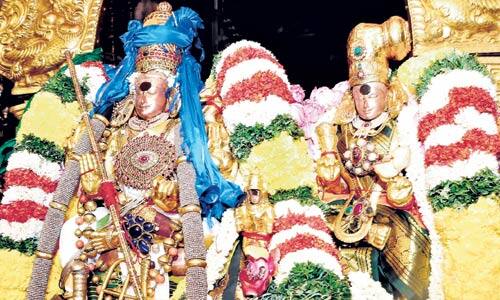 மதுரை: மதுரை மீனாட்சி அம்மன் கோயில் ஆவணி மூலத் திருவிழாவை முன்னிட்டு சுந்தரேஸ்வரருக்கு (செப்.,9) பட்டாபிஷேகம் நடந்தது. சுந்தரேஸ்வரரிடம் செங்கோல் சேர்ப்பிக்கப்பட்டு சொக்கர் ஆட்சி துவங்கியது. இக்கோயிலின் ஆவணி மூலத் திருவிழா கடந்த ஆக., 28 ல் கொடியேற்றத்துடன் துவங்கியது. சுந்தரேஸ்வரர் பட்டாபிஷேகத்தை முன்னிட்டு (செப்.,9) வளையல் விற்ற லீலை நடந்தது. காலை 11:00 மணிக்கு இம்மையில் நன்மை தருவார் கோயிலில் தங்கப்பல்லக்கு வாகனத்தில் அம்மன், சுவாமி பிரியாவிடையுடன் எழுந்தருளினர். சிவ பூஜை முடிந்து மாலை 4:00 மணிக்கு புறப்பாடாகி கோயில் சேர்த்தியானது. பட்டாபிஷேகம்: சுவாமி சன்னதி ஆறுகால் பீடத்தில் அம்மன், சுவாமி பிரியாவிடையுடன் சர்வ அலங்காரத்தில் எழுந்தருளினர். ராயர் கீரிடம், ரத்தினக்கற்கள் பதித்த செங்கோலுக்கு சிறப்பு அபிஷேகம் நடந்தது. சுந்தரேஸ்வரருக்கு பட்டாபிஷேகம் இரவு 7:25 மணிக்கு நடந்தது. ஹாலாஸ் பட்டர், கற்பூரசுந்தர பட்டர் பூஜைகளை நடத்தினர். சகல தீபாராதனைகள் முடிந்து சுந்தரேஸ்வரரிடம் இருந்து தக்கார் கருமுத்து கண்ணன் செங்கோலை பெற்று சகல விருதுகளுடன் சுவாமி சன்னதி இரண்டாம் பிரகாரம் வலம் வந்து சுந்தரேஸ்வரரிடம் சேர்ப்பித்தார். இதையடுத்து சொக்கர் ஆட்சி துவங்கியதாக ஐதீகம். (செப்.,10) நரியை பரியாக்கிய நிகழ்ச்சி காலை 9:30 மணிக்கு நடக்கிறது. ஏற்பாடுகளை தக்கார், இணை கமிஷனர் நா.நடராஜன் செய்து வருகின்றனர்.