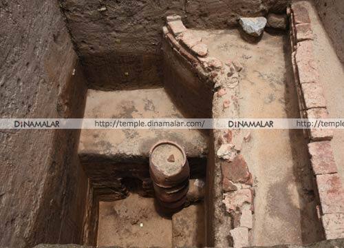 மரத்துாண்கள்: இங்குள்ள கட்டடங்களில், 36 : 22 : 6, 34 : 21 : 5, 35 : 22 : 6, 32 : 21 : 5 செ.மீ., அளவுள்ள செங்கற்கள் பயன்படுத்தப்பட்டுள்ளன. இரண்டு துளையிடப்பட்ட சுடுமண் ஓடுகள், ஆணிகள் மூலம் வேயப்பட்டுள்ளன. கூரைகளை தாங்க, மரத்துாண்களை அக்கால மக்கள் அமைத்துள்ளனர். அவற்றுக்கான குச்சிநடு குழிகள், பல்வேறு ஆழத்தில் அமைந்துள்ளன. கிடைத்துள்ள மண்பாண்டங்கள், அணிகலன்கள் உள்ளிட்ட பொருட்களை, சி 14 ஆய்வுக்கு உட்படுத்தி, காலக்கணிப்பு செய்ய வேண்டி உள்ளது. இந்த ஆய்வு, வரலாற்றில் திருப்புமுனையாக அமைய வாய்ப்பு உள்ளது. இவ்வாறு அவர் கூறினார்.