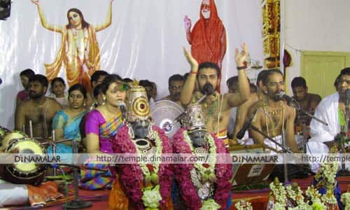 குரோம்பேட்டை: உலக மக்களின் நன்மைக்காக, 100 மணி நேரம் நடந்த, அகண்ட மஹா மந்த்ர நாம ஸங்கீர்த்தனம் நிகழ்ச்சி நேற்று நிறைவு பெற்றது. ஸ்ரீ கிருஷ்ண சைதன்ய சுவாமிகள் நினைவாகவும், உலக மக்களின் நன்மைக்காகவும், தொடர்ந்து, 100 மணி நேரம் அகண்ட மஹா மந்த்ர நாம ஸங்கீர்த்தனம் நிகழ்ச்சியை, கடையநல்லுார் கே.எஸ்.ராஜகோபால் தாஸ் பாகவதர் நடத்தினார். குரோம்பேட்டை ஏர்.ஆர்.வி., மஹாலில், கடந்த, 14ம் தேதி முதல், தொடர்ந்து ஐந்து நாட்கள், இடைவிடாமல் நடந்த இந்நிகழ்ச்சி, நேற்று இரவு நிறைவு பெற்றது. முன்னதாக, நேற்று மாலையில் இருந்து, நுாற்றுக்கணக்கானோர் கே.எஸ்.ராஜகோபால் தாஸ் பாகவதருடன் இணைந்து நாம ஸங்கீர்த்தனம் இசைத்தனர். அதை தொடர்ந்து, இரவு, 8:01 மணிக்கு, ஸ்ரீமதி சுபத்ராஜி நிகழ்ச்சியை நிறைவு செய்து வைத்தார்.