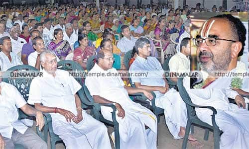 திருப்பூர்: ""ராமன் அவதரித்த அயோத்தியாவை விட, முதன்மையான பூமி, ராமாயணம் தோன்றிய பிட்டூர், என, ஆன்மிக சொற்பொழிவாளர் வேளுக்குடி கிருஷ்ணன் பேசினார். ராமாயணம் குறித்த ஆன்மிக தொடர் சொற்பொழிவு, திருப்பூர் காங்கயம் ரோடு, காயத்ரி மஹாலில் நடைபெற்று வருகிறது."நவ புண்ணிய ஸ்தலங்கள் குறித்து, சொற்பொழிவாளர் வேளுக்குடி கிருஷ்ணன் பேசியதாவது: இந்த பூமியுடன் ஈரேழு பதினான்கு லோகங்களையும் ஆளும் ராமன், இந்த புண்ணிய பூமியாம் பாரத பூமியிலே, அயோத்தி முதல் ராமேஸ்வரம் வரை, தன் காலடி பட நடந்தார். ராமன் காலடி பட்ட இடமெல்லாம் புண்ணிய ஸ்தலங்களே. அவரது அவதாரங்கள் எண்ணில் அடங்காதது. ஒவ்வொரு இடத்துக்கும் ஒரு சிறப்பு உள்ளது. மலை, நதி, காடு, கோவில், குளம், ஊர் என அனைத்துமே, இறைவனோடு தொடர்புள்ளது. தியாகம், வேள்வி, தீர்த்த யாத்திரை, கல்வி, தானம், தர்மம் என, எதை எங்கு செய்ய வேண்டும் என உள்ளது. அப்படி செய்யும் போது தான், அதற்குரிய பலன் கிடைக்கும்.