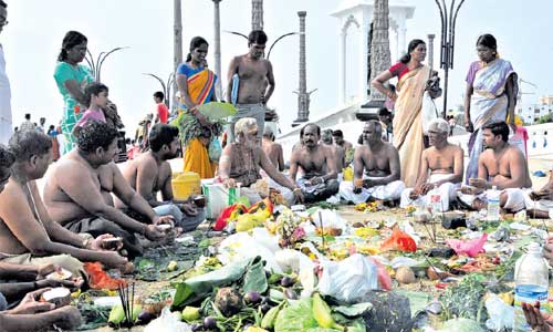 புதுச்சேரி: மகாளய அமாவாசையான செப்.,30, புதுச்சேரி கடற்கரை மற்றும் கோவில்களில், தங்கள் முன்னோர்களுக்கு ஏராளமானோர் தர்ப்பணம் கொடுத்தனர்.