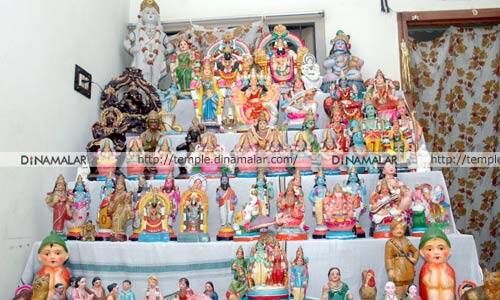 கொலு வைக்கும் போது 5,7,9 என்ற கணக்கில் படி அமைக்கின்றனர். ஒன்பது படிகள் வைப்பது பொருத்தமானதாக இருக்கும். கொலு மேடை படிகளை கிழக்கு அல்லது வடக்கு திசையில் இருக்கும் வகையில் அமைக்க வேண்டும். முதல் படியில் செடி, கொடி, காய், கனி பொம்மைகளை வைக்க வேண்டும். மனிதன் இயற்கையோடு ஒன்றி வாழ வேண்டும் என்பதைக் குறிக்கிறது. இரண்டாம் படியில் சங்கால் செய்த பொம்மைகளை வைக்கலாம். நத்தை பொம்மை வைப்பது நலம். எதையும் நிதானமாகச் செய்து உயர் இடத்தை பிடிக்க வேண்டும் என்பது இதன் பொருள்.