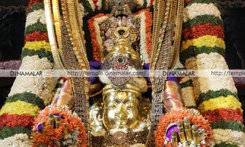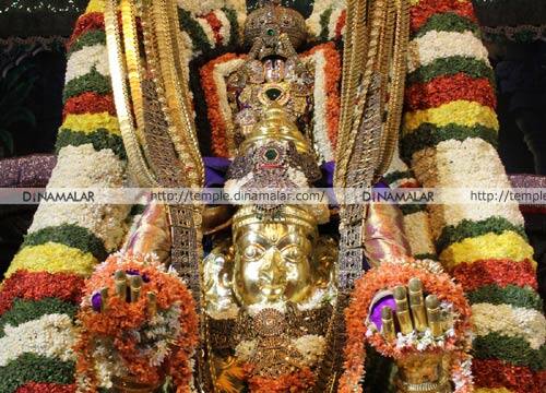ஏழுமலையான் பிரம்மோற்சவத்தின் ஐந்தாம் நாளான நேற்று காலை, மலையப்ப சுவாமி, மோகினி அவதாரத்தில் உலா வந்தார். அவருடன், ஸ்ரீகிருஷ்ணரும் நான்கு மாட வீதிகளில் வலம் வந்தார். பிரம்மோற்சவத்தின் முக்கிய சேவையான கருடசேவை, நேற்று இரவு துவங்கியது. கருட வாகனத்தில் வந்த மலையப்ப சுவாமிக்கு, ஏழுமலையான் மூலவருக்கு அணிவிக்கப்படும், பல கோடி ரூபாய் மதிப்புள்ள, 1008 சகஸ்ர காசு மாலை, 108 லட்சுமி உருவம் பதித்த ஆரம், மகர கண்டி ஆகியவை அணிவிக்கப்பட்டது. மேலும், தமிழகத்தின் ஸ்ரீவில்லிப்புத்தூரில் இருந்து வந்த ஆண்டாள் மாலையும் அணிவிக்கப்பட்டது. மலையப்பசுவாமி கருட வாகனத்தில் வலம்வந்து பக்தர்களுக்கு அருள்பாலித்தார். கருட வாகனத்தில் வலம்வரும் போது மூலஸ்தானத்தில் அணிந்திருக்கும் ஆபரணங்களை அணிந்து வந்ததால், மூலவரே நேரில் வருவதாக எண்ணி அவரை தரிசிக்க லட்சக்கணக்கில் பக்தர்கள் தரிசனம் செய்தனர்.