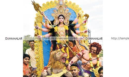 திருப்பூர்: நவராத்திரி விழா நிறைவு பெற்றதால், துர்கா சிலைகள், பவானி கூடுதுறையில் விசர்ஜனம் செய்யப்பட்டன. திருப்பூர் நவதுர்கா பூஜா சமிதி சார்பில், வீரபாண்டி குப்பாண்டம்பாளையம் வாணியர் திருமமண்டபத்தில், நவராத்திரி துர்கா பூஜை கொண்டாடப்பட்டது. கடந்த, 1 முதல், 10 ம் தேதி வரை, தினந்தோறும் காலை, 8:00 மணி மற்றும் மாலை, 7:00 மணிக்கு பூஜை, பஜனை மற்றும் கலைநிகழ்ச்சிகள் நடைபெற்றது. விஜயதசமியை முன்னிட்டு, மஹா நவமி சித்தி தாத்ரி பூஜை, ஹோமம் மற்றும் இரவு முழுவதும் பஜனை நடந்தது. நவராத்திரி பூஜை நிறைவு பெற்றதையடுத்து, மண்டபத்தில், 10 நாட்களாக வழிபட்டு வந்த, துர்காம்பிகை உள்ளிட்ட சிலைகள், நேற்று விசர்ஜனம் செய்வதற்காக, எடுத்து செல்லப்பட்டன. குப்பாண்டம்பாளையத்தில் இருந்து வேனில் கிளம்பிய ஊர்வலம், வீரபாண்டி வழியாக, தாராபுரம் ரோட்டை அடைந்தது. அங்கிருந்து, ஈரோடு மாவட்டம் பவானி கூடுதுறை சென்று, ஆற்றில் சிலைகள் விசர்ஜனம் செய்யப்பட்டன. திருப்பூர் காந்தி நகர் இ.பி., காலனியில் உள்ள கற்பகஜோதி ராஜ விநாயகர் கோவிலில், நவராத்திரி விழா சிறப்பாக கொண்டாடப்பட்டது. இதையொட்டி, கொலு வைத்து தினமும் பூஜை, வழிபாடுகள் நடத்தப்பட்டன. நிறைவுநாளன்று, பள்ளி மாணவ, மாணவியருக்கு இலவச எழுது பொருட்கள், அன்னதானம் வழங்கப்பட்டது.