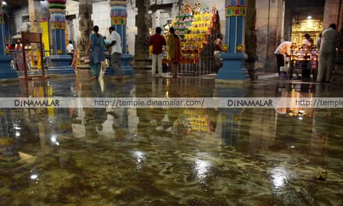 திருப்பூர்: திருப்பூரில் நேற்று மாலை, 4:30 மணியளவில், இடி, மின்னலுடன் கனமழை துவங்கி, ஒன்றரை மணி நேரம் வரை பெய்தது.இதனால், பிரதான ரோடுகள், ஓடைகளில் வெள்ளப்பெருக்கு ஏற்பட்டது. நகரின் மத்தியில் உள்ள, விஸ்வேஸ்வரசுவாமி கோவிலுக்குள், மழைநீர் புகுந்தது. கோவிலை சுற்றிலும் உள்ள ரோடுகளில், மழை நீருடன், சாக்கடை கழிவும் சேர்ந்து, கோவில் வெளி பிரகாரம் முழுவதும் சூழ்ந்தது. நேற்று பிரதோஷம் என்பதால், வழக்கமாக நடக்கும் சிறப்பு பூஜைக்காக, நூற்றுக்கணக்கான பக்தர்கள் கோவிலில் இருந்தனர். திடீரென மழைநீரும், கழிவு நீரும் கோவிலுக்குள் வந்ததால், பக்தர்கள் அதிர்ச்சியடைந்தனர்.ஒதுங்கக்கூட இடமின்றி, பலரும் அவதிக்குள்ளாகினர். நந்தியை சுற்றிலும் மழைநீர் சூழ்ந்ததால், பிரதோஷ சிறப்பு பூஜை, வழிபாடுகள் தடைபட்டன. பிரதான ரோட்டில் வரும் மழை நீர், கோவிலுக்குள் நுழையும் வாய்ப்பு இருப்பதை அறிந்தும், ராஜகோபுரம், தெற்கு கோபுரம் உள்ளிட்ட பகுதிகளில், கோவில் நிர்வாகம், எவ்வித முன்னேற்பாடும் செய்யவில்லை. அதேபோல், கோவிலுக்குள் விழும் மழை நீர் வெளியேறும் கட்டமைப்பில் உள்ள அடைப்புகளை கூட, அறநிலையத்துறை அதிகாரிகள் கண்டு கொள்ளாததே, இந்த அவதிக்கு காரணமாக அமைந்தது. மழை நின்ற பிறகும் கூட, தண்ணீரை வெளியேற்ற, உரிய நடவடிக்கை எடுக்காததால், கோவில் வளாகம் முழுவதும், சேறும், சகதியுமாக மாறியது. இது, பக்தர்களை வேதனையடைய செய்தது.