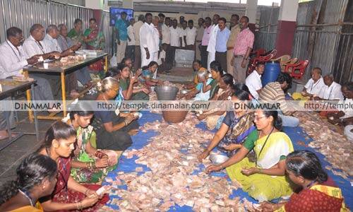 செஞ்சி: மேல்மலையனுார் அங்காளம்மன் கோவிலில் 24 லட்சம் ரூபாயை பக்தர்கள் காணிக்கையாக செலுத்தி இருந்தனர். விழுப்புரம் மாவட்டம், மேல்மலையனுார் அங்காளம்மன் கோவிலில், நேற்று உண்டியல் எண்ணும் பணி நடந்தது. இந்து சமய அறநிலைய துறை உதவி ஆணையர்கள் விழுப்புரம் பிரகாஷ், திருவண்ணாமலை மோகனசுந்தரம் உண்டியல் எண்ணும் பணியை கண்காணித்தனர். இதில் பக்தர்கள் 24 லட்சத்து 42 ஆயிரத்து 255 ரூபாயும், 124 கிராம் தங்கமும், 335 கிராம் வெள்ளியும் காணிக்கையாக செலுத்தி இருந்தனர். அறங்காவலர் குழு தலைவர் ஏழுமலை, அறங்காவலர்கள் ரமேஷ், கணேசன், செல்வம், சரவணன், மணி, சேகர் கண்காணிப்பாளர் வேலு, ஆய்வாளர் அன்பழகன், ஊழியர்கள் மணி, சதீஷ், சண்முகம் ஆகியோர் உடன் இருந்தனர்.