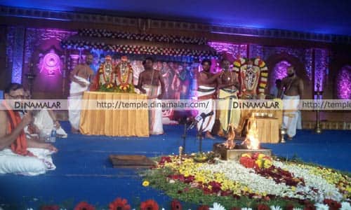 பாலக்காடு: திருப்பதி ஸ்ரீனிவாசா திருக்கல்யாணம், பாலக்காட்டில் கோலாகலமாக நடந்தது. திருப்பதி வெங்கடாசலபதிக்கு செய்யும் சிறப்பு வழிபாடுகளில் ஒன்று, ஆர்ஜித சேவை. ஆர்ஜித சேவைகளில் முக்கியமானது திருமண உற்சவம். திருப்பதி தேவஸ்தானம் சார்பில் நடத்தப்படும், ஸ்ரீனிவாசா திருமண உற்சவ விழா, வெகு பிரசித்தம். திருப்பதிக்கு சென்று, திருமண உற்சவத்தில் பங்கேற்க முடியாத பக்தர்களுக்காக, பாலக்காடு கோட்டை மைதானத்தில் ஸ்ரீனிவாசா திருமண உற்சவ ஏற்பாடு செய்யப்பட்டிருந்தது. ஏராளமான பக்தர்கள் பங்கேற்றனர். திருப்பதி திருமலை தேவஸ்தானத்தின் தலைமையில், இந்நிகழ்ச்சியில் பல்வேறு சிறப்பு பூஜைகள் நடைபெற்றன. நிகழ்ச்சியில் ஹரிகதை மற்றும் அன்னமாச்சாரிய கீர்த்தனைகளை பக்தர்கள் கேட்டு பரவசமடைந்தனர். திருப்பதி தேவஸ்தான தலைவர் கிருஷ்ணமூர்த்தியின் தலைமையில், அர்ச்சகர்கள் உட்பட, 45 ஊழியர்கள் ஏற்பாடுகளை செய்திருந்தனர். இரவு, 9:00 மணிக்கு பிரசாத வினியோகத்துடன் திருமண உற்சவம் நிறைவடைந்தது.