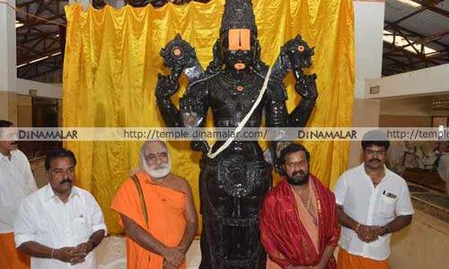 வேலுார்: வேலுார் தங்க கோவிலுக்கு அருகே, 10 கோடி ரூபாய் மதிப்பில், சீனிவாச பெருமாள் கோவில் கட்டப்பட்டு உள்ளது. இதற்கு, டிச., 9ல், கும்பாபிஷேகம் நடக்கிறது.வேலுார் அருகே, ஸ்ரீபுரத்தில் உள்ள, தங்க கோவிலில் உள்ள மகா லஷ்மியை, தினமும், ஆயிரக்கணக்கான பக்தர்கள் தரிசித்து செல்கின்றனர். தற்போது இங்கேயே, 10 கோடி ரூபாய் செலவில், சீனிவாச பெருமாளுக்கு தனி கோவில் அமைக்கப்பட்டு உள்ளது. இங்கு, 9 அடி உயரத்தில், கிருஷ்ண சிவா சிலா என்னும் கறுப்பு கல்லில், சீனிவாச பெருமாள் சிலை வடிவமைக்கப்பட்டு உள்ளது. வரும், டிச., 9 காலை, 9:15 மணி முதல், 10:15 மணிக்குள், மகா கும்பாபிஷேகம் நடக்கிறது. சீனிவாச பெருமாளுக்கு தினமும் பூஜை செய்து அலங்கரிக்க, 50 கிலோ தங்கம், வெள்ளியில் ஆபரணம் தயாராகி கொண்டிருக்கிறது. இத்தகவலை, வேலுார் நாராயணி பீடம் சக்தி அம்மா கூறினார்.