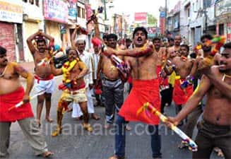 கோவை : கோவை ராஜவீதி ராமலிங்க சவுடாம்பிகை அம்மன் கோவில் திருவிழாவை முன்னிட்டு, ஏராளமான பக்தர்கள் கத்தி போட்டு நேர்த்திக்கடன் செலுத்தினர். கோவை ராஜவீதியில் பிரசித்தி பெற்ற ராமலிங்க சவுடாம்பிகை அம்மன் கோவில் உள்ளது. இங்கு ஒவ்வொரு ஆண்டும், நவராத்திரி மற்றும் விஜயதசமியை முன்னிட்டு திருவிழா நடத்தப்படுவது வழக்கம். இந்தாண்டு திருவிழா, கடந்த பத்து நாட்களாக நடந்து வருகிறது. விஜயதசமியை முன்னிட்டு, கோவிலில் அம்மனுக்கு சிறப்பு அபிஷேகம், ஆராதனை நடந்தது. திருவிழாவின் முக்கிய நிகழ்ச்சியான கத்தி போடுதல், நேற்று நடந்தது. வெவ்வேறு பகுதிகளில் இருந்து, பக்திப்பரவசத்துடன், கத்தி வீசி ஆடியபடி வந்த பக்தர்கள், அம்மனுக்கு நேர்த்திக்கடன் செலுத்தினர். உடலில் கத்தி வெட்டிய இடத்தில் ரத்தம் சொட்டிய நிலையில் பக்தர்கள் ஆடிச்சென்றது, மெய்சிலிர்ப்பதாக இருந்தது.