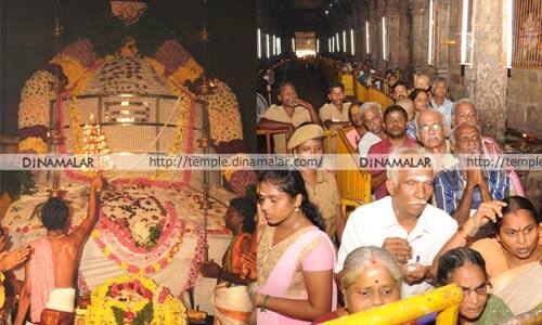 அரியலுார் மாவட்டம், ஜெயங்கொண்டம் அடுத்த கங்கைகொண்ட சோழபுரம் கிராமத்தில், ராஜேந்திர சோழனால் கட்டப்பட்ட, 1,000 ஆண்டுகள் பழமையான பிரகதீஸ்வரர் கோவில் உள்ளது. இக்கோவிலில் பிரதிஷ்டை செய்யப்பட்டுள்ள சிவலிங்கம், 60 அடி சுற்றளவும், பதிமூன்றரை அடி உயரமும் உடையது. இங்கு, ஆண்டு தோறும் ஐப்பசி பவுர்ணமி நாளில், அன்னாபிஷேகம் நடைபெறும். இந்தாண்டுக்கான அன்னாபிஷேம் நேற்று நடந்தது. இதை முன்னிட்டு, 12ம் தேதி காலை, 9:00 மணிக்கு, கணக்க விநாய கருக்கு மகாபிஷேகமும்; 13ம் தேதி காலை, 9:00 மணிக்கு பிரகதீஸ்வரர், அம்பாள், மகிஷாசுரமர்த்தினி, சுப்ரமணியர் மற்றும் நவ கிரகங்கள் ஆகியவற்றுக்கு மகாபிஷேகமும் தீபாராதனையும் நடந்தது. முக்கிய நிகழ்வாக நேற்று, 75 கிலோ அளவுள்ள, 46 மூட்டை, 3,450 கிலோ பச்சரிசியால் சாதம் சமைத்து, காலை, 11:00 முதல் மாலை, 4:15 மணி வரை, பிரகதீஸ்வரருக்கு அன்னாபிஷேகமும், 6 மணியளவில் தீபாராதனையும் நடந்தது. தொடர்ந்து, நேற்று இரவு, 9:00 மணிக்கு, பக்தர்களுக்கு அன்ன பிரசாதம் வழங்கப்பட்டது. இதில், 20 ஆயிரத்துக்கும் மேற்பட்ட பக்தர்கள் பங்கேற்றனர். அன்னா பிரசாதத்துக்காக தயாரிக்கப்பட்டு லிங்கத்தின் மேல் சாத்தப்பட்ட சாதத்தில், 70 சதவீதம் மக்களுக்கும்; 20 சதவீதம் கால்நடைகளுக்கும், 10 சதவீதம் மீன்களுக்கும் வழங்கப்பட்டது.