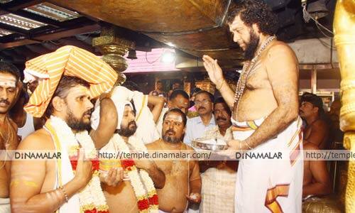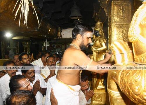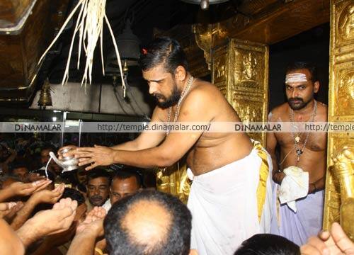 பின்னர் அவரது செவியில் ஐயப்பன் மூல மந்திரத்தை சொல்லிக் கொடுத்து கோயிலுக்குள் அழைத்து சென்றார். இதுபோல மனுகுமார் நம்பூதிரிக்கு மாளிகைப்புறம் கோயில் முன்புறம் நடைபெற்ற சடங்கில் தந்திரிஅபிஷேகம் நடத்தி, தேவி மந்திரம் சொல்லிக்கொடுத்து கோயிலுக்குள் அழைத்து சென்றார்.நேற்று வேறு எந்த விசேஷ பூஜைகளும் நடைபெறவில்லை. இரவு 11:00 மணிக்கு நடை அடைக்கப் பட்டது.நேற்று இரவு 3:00 மணிக்கு புதிய மேல்சாந்தி உண்ணி கிருஷ்ணன் நம்பூதிரி நடை திறந்து தீபம் ஏற்றியதும், தந்திரி அபிஷேகம் நடத்திய பின்னர் மண்டலகால நெய்யபிஷேகத்தை தொடங்கி வைப்பார். தொடர்ந்து கணபதி ஹோமம் நடைபெறும். வரும் 41 நாட்களிலும் காலை 4:15 மணி முதல் பகல் 12:30 வரை நெய்யபிஷேகம் நடைபெறும். எல்லா நாட்களிலும் காலை 7:30-க்கு உஷபூஜை, பகல் ஒரு மணிக்கு உச்சபூஜை, மாலை 6:30-க்கு தீபாராதனை, இரவு 7:00 மணிக்கு புஷ்பாபிஷேகம், இரவு 10:00 -க்கு அத்தாழபூஜை ஆகியவை நடைபெறும்.