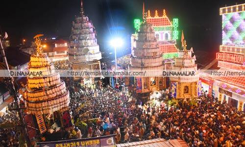 பாலக்காடு: கேரள மாநிலம் பாலக்காடு கல்பாத்தியில், விசாலாசி சமேத விஸ்வநாதர் கோவில் தேர் திருவிழா, கடந்த 14ல் துவங்கியது. முதல் நாள் விழாவில், விசாலாட்சி சமேத விஸ்வநாதர் சுவாமி, சுப்பிரமணியர், விநாயகர் அலங்கரிக்கப்பட்ட திருத்தேரில் நான்கு வீதிகளிலும் பவனி வந்தன. நேற்று காலை 10.50 மணியளவில் பழைய கல்பாத்தி லட்சுமி நாராயண பெருமாள் கோவிலிலும் சாத்தப்புரம் பிரசன்ன கணபதி கோவிலிலும் ரத உற்சவம் நடைபெற்றன. மாலையில் பழைய கல்பாத்தி லட்சுமி நாராயண பெருமாள் தேர், சாத்தப்புரம் பிரசன்ன கணபதி கோவில் தேர், விசாலாட்சி சமேத விஸ்வநாதர் கோவில் தேர்கள் இரவில் ஜொலித்த வண்ணவிளக்குகளுடன் தேர்முட்டியில் சங்கமித்து, பக்தர்களுக்கு அருள் பாலித்தன.