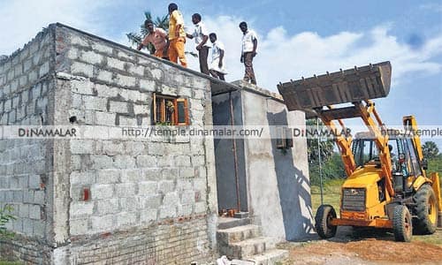 திருப்போரூர்: திருப்போரூர், கந்தசுவாமி கோவில் நிலத்தை ஆக்கிரமித்து கட்டப்பட்டுஇருந்த வீட்டை, அறநிலைய துறையினர் அதிரடியாக அகற்றினர். திருப்போரூர், கந்தசுவாமி கோவிலுக்கு சொந்தமாக, 650 ஏக்கர் விவசாய நிலங்கள், குடியிருப்பு மற்றும் வாடகை கட்டடங்கள் உள்ளன. அவ்வப்போது ஆக்கிரமிப்புகள் அகற்றப்படும் நிலையில், நேற்று, திருப்போரூர் நெம்மேலி சாலையில் ஆக்கிரமித்து கட்டப்பட்டிருந்த குடியிருப்பு கட்டடத்தை, திருப்போரூர் போலீசார் உதவியுடன், கந்தசுவாமி கோவில் நிர்வாகம் அதிரடியாக அகற்றியது. இதன் மதிப்பு, ஏழு லட்சம் ரூபாய் என, கூறப்படுகிறது.