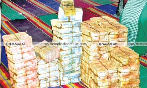 ராமேஸ்வரம், ராமேஸ்வரம் ராமநாதசுவாமி கோயில் உண்டியல் திறந்து எண்ணப்பட்டதில் 19.95 லட்சம் ரூபாய் காணிக்கையாக வசூலானது. பழைய 500, 1000 ரூபாய் நோட்டுகள் செல்லாமல் போனதால், கருப்பு பணத்தை பதுக்கியவர்கள் கோயில் உண்டியலில் செல்லாத பணத்தை காணிக்கையாக செலுத்த வாய்ப்பு உள்ளது என இந்து அறநிலைதுறை அதிகாரிகள் கருதினர். இதையடுத்து முக்கிய கோயில்களில் உண்டியல்களில் உள்ள உண்டியல்களை நவ., 24, 30 மற்றும் டிச., 8, 15, 30 ஆகிய தேதிகளில் திறந்து எண்ணுமாறு கோயில் ஆணையர் உத்தரவிட்டார். அதன்படி 2ம் கட்டமாக நேற்று ராமேஸ்வரம் திருக்கோயிலில் உண்டியல் திறந்து எண்ணப்பட்டது. இதில் செல்லாத 500, 1000 ரூபாய் நோட்டுகள் குறைந்த எண்ணிக்கையில் இருந்தது. இருந்தாலும் 6 நாட்கள் பக்தர்கள் காணிக்கையாக செலுத்திய 19 லட்சத்து 95 ஆயிரத்து 266 ரூபாய் ரொக்கம், 12 கிராம் 500 மி.கி., தங்கம், 645 கிராம் வெள்ளி கிடைத்தது. கோயில் இணை ஆணையர் செல்வராஜ், உதவி கோட்ட பொறியாளர் மயில்வாகணன், கண்காணிப்பாளர் கக்காரின், பேஷ்கார்கள் அண்ணாதுரை, கமலநாதன் ஆகியோர் முன்னிலையில் உண்டியல் எண்ணப்பட்டது.