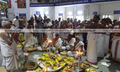 திருக்கோவிலுார்: திருவண்ணாமலை பகவான் யோகி ராம்சுரத்குமார் மகராஜின், 98ம் ஆண்டு ஜெயந்தி விழாவில் நேற்று, அதிஷ்டானத்தில் ஏகாதச ருத்ர ஜபம் நடந்தது. விழாவின் இரண்டாம் நாளான நேற்று, காலை, 7:00 மணிக்கு, பிரதான் மந்திரில் கடஸ்தாபனம், மகன்யாசம், ஏகாதச ருத்ரஜபம், யாகசாலை பூஜை, கடம் புறப்பாடு நடந்தது. பின், நுால் வெளியீட்டு விழாவும், பக்தர்களின் பஜனை, அதிஷ்டானத்தில் மகா அபிஷேகம், அலங்காரம், அர்ச்சனை, சோடசோபவுபசார தீபாராதனை, சற்குருநாத ஓதுவாரின் தேவார நிகழ்ச்சி நடந்தது. மாலை, மும்பை ராமன்சங்கர் குழுவினரின் பக்தி இசையும், அதைத் தொடர்ந்து, கவுதம் பரத்வாஜ் குழுவினரின் பக்திப்பாடல் நிகழ்ச்சி நடந்தது. இரவு வெள்ளி ரதத்தில் உற்சவர் உலா, ஆரத்தி நடந்தது.ஏற்பாடுகளை, ஆசிரமத் தலைவர் ஜஸ்டிஸ் டி.எஸ்.அருணாசலம் மற்றும் நிர்வாகிகள் செய்தனர்.