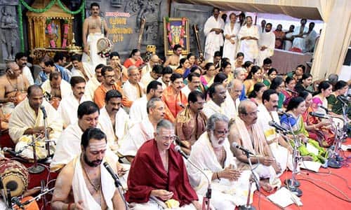 கேரள மாநிலம், குருவாயூர் கிருஷ்ணர் கோவிலில், செம்பை சங்கீத உற்சவம் நவ., 25ல் துவங்கியது. தேவஸ்தானம் துறை அமைச்சர் கடகம்பள்ளி சுரேந்திரன் துவக்கி வைத்தார். பல்வேறு மாநிலங்களைச் சேர்ந்த பிரபல இசைக் கலைஞர்களின் கச்சேரிகள் நடந்தன. உற்சவத்தின் சிறப்பு அம்சமான பஞ்சரத்ன கீர்த்தனை இசைக்கும் நிகழ்ச்சி, டிச.,9 காலை, 9:30 முதல், 10:30 மணி வரை நடந்தது. நுாற்றுக்கும் மேற்பட்ட கலைஞர்கள் பங்கேற்று பாடிய கீர்த்தனங்களை, ஆயிரக்கணக்கானோர் ரசித்தனர். டிச.,10 இரவு, 10:00 மணிக்கு மூத்த இசைக் கலைஞர்கள் கே.ஜி.ஜயன் மற்றும் டி.வி.கோபாலகிருஷ்ணன் தலைமையில் கச்சேரி நடக்கிறது.