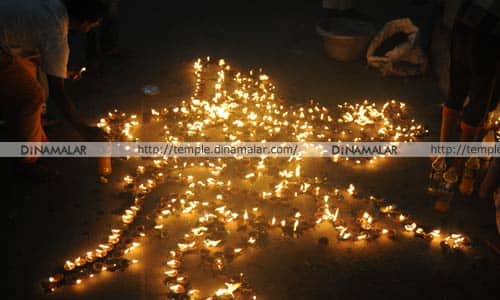 வில்லியனுார் : கார்த்திகை தீபத்தை முன்னிட்டு வில்லியனுார் திருக்காமீஸ்வரர் கோவிலில் லட்ச தீபம் ஏற்றப்பட்டது. கார்த்திகை தீப திருவிழாவை முன்னிட்டு, வில்லியனுார் கோகிலாம்பிகை சமேத திருக்காமீஸ்வரர் கோவிலில், லட்ச தீப விழா நேற்று நடந்தது. லட்ச தீப விழாவை முன்னிட்டு சாமிக்கு, நேற்று காலை, சிறப்பு அபிஷேகம் மற்றும் தீபாராதனை நடந்தது. மாலையில் கோவில் வளாகம் மற்றும் குளக்கரை உள்ளிட்ட பகுதியில் ஒரு லட்சம் அகல் விளக்கு ஏற்றப்பட்டது. இவ்விழாவில் அமைச்சர் நமச்சிவாயம், இந்து அறநிலையத்துறை ஆணையர் தில்லைவேல், வட்டார காங்., தலைவர் அய்யூப் உள்ளிட்ட நிர்வாகிகள் கலந்து கொண்டனர். லட்ச தீப விழாவிற்கான ஏற்பாடுகளை உபயதாரர் அன்பு குடும்பத்தினருடன் சிவனடியார் மற்றும் சிவாச்சாரியர்கள் செய்தனர்.