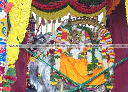 அதன்படி (டிச 21) அதிகாலை அதிகாலை கோயிலில் இருந்து இருவரும் புறப்பாடாகி, கீழமாசிவீதி வந்தனர். அங்கு இரு சப்பரங்களில், சிவபெருமானும், அம்மனும் ரிஷப வாகனத்தில் எழுந்தருளி கீழவெளிவீதி, தெற்கு வெளி வீதி, மேலவெளிவீதி வடக்கு வெளிவீதி என நான்கு வெளி வீதிகளிலும் வலம் வந்து பக்தர்களுக்கு அருள்பாலித்தனர். வரும் வழியில், ஜீவராசிகளுக்கு படியளக்க, பக்தர்கள் ரோட்டின் இருபுறமும் அரிசியை தூவியும், அதை எடுத்தும் வழிபட்டனர்.