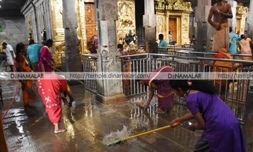 திருப்பூர்: திருப்பூர் விஸ்வேஸ்வர சுவாமி மற்றும் வீரராகவப் பெருமாள் கோவில்களில் நேற்று உழவார பணி நடந்தது. திருப்பூர் சிவனடியார் திருக்கூட்டம் சார்பில், விஸ்வேஸ்வர சுவாமி கோவிலில் தூய்மை பணி நடந்தது. கோவில் பிரகாரம், சன்னதி, கொடிமரம் உள்ளிட்ட கோவில் முழுவதும் இருந்த குப்பை, எண்ணெய் கறை அகற்றப்பட்டு, சுத்தம் செய்யப்பட்டது. பூஜை பொருட்கள் அனைத்தும் தூய்மைப்படுத்தப்பட்டது. கோவில் முழுவதும் தண்ணீர் விட்டு சுத்தம் செய்யப்பட்டது. உழவார பணியில், சிவனடியார்கள் பங்கேற்றனர். இதேபோல், வீரராகவப் பெருமாள் கோவிலில், சேக்கிழார் புனித பேரவை சார்பில், கோவில் வளாக பகுதி, சுற்றுப்பிரகாரம், வெளிப்பிரகாரம் முழுவதும் தண்ணீர் பாய்ச்சி, தூய்மைப்படுத்தப்பட்டது. பேரவை நிறுவன தலைவர் முத்து நடராஜன் தலைமையில், நூற்றுக்கும் மேற்பட்டோர் பங்கேற்றனர்.