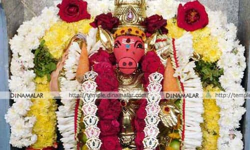 நெத்திமேடு: சேலம், நெத்திமேடு காளியம்மன் கோவிலில் உள்ள வராஹி அம்மனுக்கு, பித்தளை கவசம், புதிதாக சாத்துப்படி செய்யப்பட்டது. இதையொட்டி, நேற்று காலை, 8:15 மணியளவில், விக்னேஷ்வர பூஜை, புண்ணிய யாகானம், மகா கணபதி ஹோமம் செய்த பின், வராஹி அம்மனுக்கு சிறப்பு அபி?ஷகம் நடந்தது. தொடர்ந்து, பித்தளை கவசம் சாத்துப்படி செய்து, சிறப்பு அலங்காரத்தில், அம்மன், பக்தர்களுக்கு அருள்பாலித்தார். மூலவர் காளியம்மன், துர்க்கை தாயாரும், சிறப்பு அலங்காரத்தில் காட்சியளித்தனர். நிறைவாக, பக்தர்களுக்கு அன்னதானம் வழங்கப்பட்டது. பித்தளை கவசத்தை, பெண் பக்தை ஒருவர், காணிக்கையாக செலுத்தினார்.