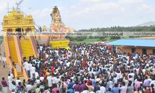 திருவண்ணாமலை: திருவண்ணாமலை அருகே, ஆதி அய்யப்பன் கோவிலில், 27 அடி உயர மணிகண்டன் சுவாமி சிலை, புதிதாக பிரதிஷ்டை செய்யப்பட்டு, நேற்று கும்பாபிஷேகம் நடத்தப்பட்டது. திருவண்ணாமலை மாவட்டம், வாணாபுரம் அருகே, க.உண்ணாமுலைபாளையம் கிராமத்தில், 1990ல், பூமியில் கண்டெடுக்கப்பட்ட மணிகண்டன் சுவாமி சிலையை வைத்து, கோவில் கட்டி, சபரிமலை அய்யப்பன் கோவிலில் உள்ளது போல், இங்கு பூஜை நடக்கிறது. கோவிலில் உள்ள குன்றின் மீது, 27 படிகள் அமைக்கப்பட்டு, 10 லட்சம் ரூபாய் மதிப்பில், 27 அடி உயர மணிகண்டன் சிலை புதிதாக பிரதிஷ்டை செய்யப்பட்டு, நேற்று கும்பாபிஷேகம் நடந்தது. நேற்று முன்தினம் விக்னேஷ்வர பூஜை, கணபதி ஹோமம், யாகசாலை பிரவேசம் நடந்தது. நேற்று காலை, 11:45 மணிக்கு, 27 அடி உயர மணிகண்டன் சுவாமி சிலைக்கு, கும்பாபிஷேகம் செய்யப்பட்டது. ஆயிரக்கணக்கான பக்தர்கள் சுவாமி தரிசனம் செய்தனர்.