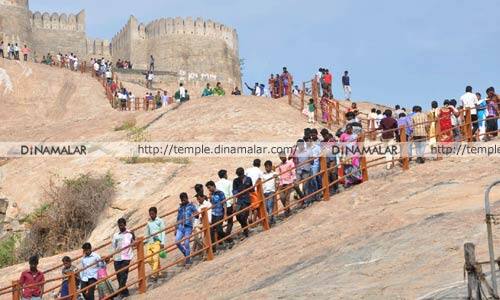 நாமக்கல்: ஆங்கில புத்தாண்டை முன்னிட்டு, நாமக்கல் நகருக்கு வந்த பொதுமக்கள், கூட்டம் கூட்டமாக, மலைக்கோட்டைக்கு சென்று, நகரின் அழகை கண்டு ரசித்தனர். நாமக்கல் நகரின் மத்தியில் அமைந்துள்ள மலைக்கோட்டை, மக்களை பெரிதும் கவர்ந்துள்ளது. பாறையின் மீது அமைந்துள்ள இந்த கோட்டை, ராமச்சந்திர நாயக்கர் கட்டியதாக கூறப்படுகிறது. ஆங்கிலேயர் ஆட்சி காலத்தில், திப்புசுல்தான் இந்த கோட்டையில் இருந்து, ஆங்கிலேயர்களை எதிர்த்து சண்டையிட்டார். சிறப்பு மிக்க மலைக்கோட்டைக்கு, நாள்தோறும் ஏராளமான பொதுமக்கள், வந்து செல்கின்றனர். நேற்று, ஆங்கில புத்தாண்டை முன்னிட்டு, ஆயிரக்கணக்கான பொதுமக்கள், பெற்றோர், தங்கள் குழந்தைகளுடன் மலைக்கோட்டைக்கு சென்று, நாமக்கல் நகரின் அழகை கண்டு ரசித்தனர். அதேபோல், பள்ளி, கல்லூரி மாணவ, மாணவியர், காதலர்கள் என கூட்டம் கூட்டமாக மலையேறி சென்றது, பார்ப்பதற்கு கண்கொள்ளாக் காட்சியாக அமைந்தது.