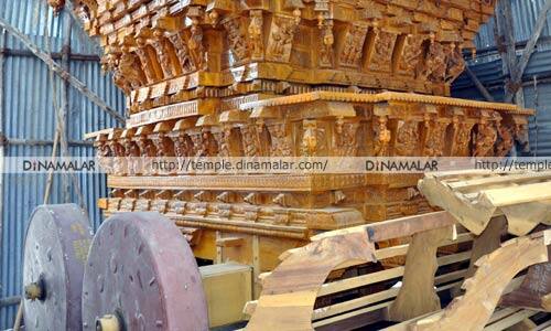 பழநி: இரண்டு ஆண்டுகளுக்கு மேலாக நடந்து வரும் பழநி மாரியம்மன் கோயிலுக்கு புதிய தேர் செய்யும் பணியை, மாசித் திருவிழாவிற்குள் முடிக்க வேண்டுமென பக்தர்கள் எதிர்பார்க்கின்றனர். பழநி ஞானதண்டாயுதபாணி சுவாமி கோயில் நிர்வாகத்திற்குபட்ட கிழக்குரத வீதி மாரியம்மன்கோயிலுக்கு வெள்ளி கிழமை மற்றும் விழாக்காலங்களில் உள்ளூர், வெளியூரைச் சேர்ந்த ஏராளமான பக்தர்கள் வருகின்றனர். இக்கோயிலுக்கு என தனியாக தேர் இல்லாததால் மாசி மாத மாரியம்மன் கோயில் தேரோட்டத்தின்போது, பெரியநாயகியம்மன் கோயில் தேரையே பயன்படுத்துவர். 2014ல் மாரியம்மன் கோயிலுக்கென புதியத்தேரை ரூ.18லட்சம் செலவில் தயாரிக்க முடிவு செய்தனர். அதன்படி, 14.3 அடிஉயரம், 9.8 அடி நீளம் கொண்ட தேர் சாஸ்திர விதிமுறைகளின்படி அமைக்கப்பட்டு வருகிறது. இப்பணி 2 ஆண்டுகளுக்கு மேலாகியும் முடியாமல் உள்ளது. பணிகளை விரைவுபடுத்தி வரும் மாசி திருவிழாவில் புதுத்தேரை பயன்படுத்தும் வகையில் பணியை முடிக்க வேண்டும் என பக்தர்கள் வலியுறுத்தினர். கோயில் அதிகாரி ஒருவர் கூறுகையில், “தேர் அமைக்கும் பணியில் 80 சதவீத பணிகள் முடிந்து விட்டது. சிற்பவேலைப்பாடு பணிகளை விரைவாக நடந்து வருகிறது. மாசித் திருவிழாவில் புதுத்தேரை வெள்ளோட்டம் பார்க்க திட்டமிட்டுள்ளோம்,” என்றார்.