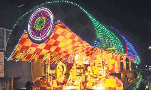 இதில் பெண்களின் பேரணியுடன் தேரோட்டம் கோயில் வளாகத்தில் துவங்கியது. முன்னாள் மேயர் மருதராஜ் துவக்கி வைத்தார். தேர் முக்கிய வீதிகள் வழியாக சென்று, மீண்டும் கோட்டை மாரியம்மன் திடலுக்கு வந்தடைந்தது. மீண்டும் ஜன.6, 9:00 மணிக்கு தாலுகா அலுவலக ரோடு, பழநி ரோடு வழியாக ஸ்ரீதுர்க்கை பூஜை மண்டபம் அடைந்தது. தேரோட்டத்தில் பங்கேற்ற பெண்களுக்கு திருமாங்கல்ய கயிறு, செங்கயிறு உள்ளிட்ட பிரசாத பொருட்கள் வழங்கப்பட்டன. ஏற்பாடுகளை ஒருங்கிணைப்பாளர் சிவசக்திநாகராஜ், டாக்டர் காஞ்சனை செய்திருந்தனர்.