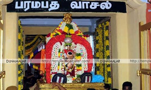 திருப்பரங்குன்றம்: வைகுண்ட ஏகாதசியை முன்னிட்டு திருப்பரங்குன்றம், திருநகர் கோயில்களில் சொர்க்கவாசல் திறக்கப்பட்டது. திருப்பரங்குன்றம் சுப்பிரமணிய சுவாமி கோயிலில் மூலஸ்தானத்தில் பவளக் கனிவாய் பெருமாள் எழுந்தருளியுள்ளதால் நேற்று கம்பத்தடி மண்டபத்திலிருந்து மடப்பள்ளி மண்டபம் செல்லும் வழியிலுள்ள பெரிய கதவு திறக்கப்பட்டு பவளக்கனிவாய் பெருமாள் எழுந்தருளினார். .