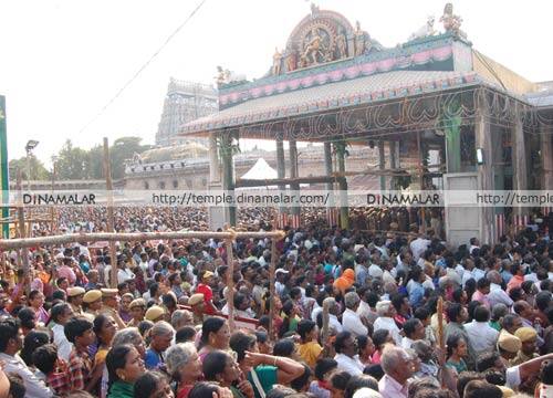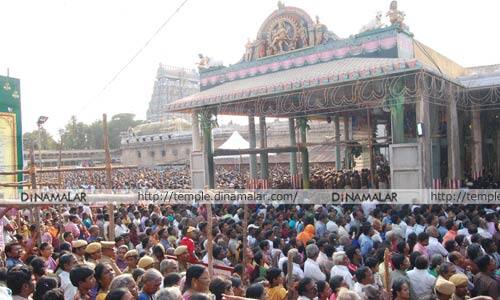 கடலூர் மாவட்டம், சிதம்பரம் நடராஜர் கோவிலில் ஆருத்ரா தரிசன விழாவில், நேற்று காலை தேரோட்டம் நடந்தது. இன்று அதிகாலை, 4 மணிக்கு நடராஜர், சிவகாம சுந்தரி அம்பாள் ஆயிரங்கால் மண்டப வாயிலில் எழுந்தருள செய்யப்பட்டு, சந்தனம், தேன், பால், தயிர், இளநீர், விபூதி, புஷ்பம் ஆகியவற்றால் அபிஷேகம் செய்விக்கப்பட்டது. தொடர்ந்து ஆயிரங்கால் மண்டபத்தில், உடுக்கை, தாளம், தம்பட்டம் முழங்க நடராஜரும், சிவகாம சுந்தரி அம்பாளின் தரிசன காட்சியைப் பல்லாயிரக்கணக்கான பக்தர்கள் மெய்சிலிர்க்க கைத்தட்டி, ஆரவாரத் துடன் தரிசனம் செய்தனர்.