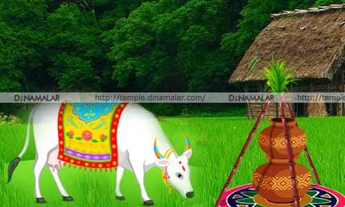 மாலை நேர பொங்கல்: பொங்கலுக்குரிய நேரம் காலைப் பொழுது என்றால், மாட்டுப்பொங்கலுக்கு ஏற்ற நேரம் மாலைநேரம். அதற்கும் காரணம் உண்டு. கண்ணன் காலையில் பசுக்களை ஓட்டிக் கொண்டு பிருந்தாவனத்திற்கு மேய்ச்சலுக்குச் சென்றுவிட்டு, மாலையில் குழலூதியபடியே ஆயர்பாடிக்கு திரும்பி வருவான். அதனால் மாட்டுப்பொங்கலை மாலையில் வைக்கும் வழக்கம் உண்டானது. பசுக்களை நீராட்டி, கொம்புகளில் வர்ணம் தீட்டி அழகுபடுத்துவர். பசுவின் கழுத்தில் மணியும், வேட்டியும் கட்டுவர். மாட்டுக் கொட்டிலின் முன் பொங்கலிட்டு, காளை, பசுவிற்குப் படையலிடுவர். பொங்கல் பொங்கும்போது, பட்டிபெருக பால் பானை பொங்க என்று சொல்லி குலவையிடுவர். அதன்பின்னர், பசுமாட்டை கோயிலுக்கும், காளை மாட்டை மஞ்சுவிரட்டுக்கும் அழைத்துச் செல்வர்.