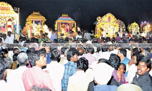 சித்துார் மாவட்டம், நகரி மண்டபம் அருகே எழுந்தருளியுள்ள வழிதுணை விநாயகர் கோவில் வளாகத்தில் ஆண்டுதோறும் காணும் பொங்கல் பண்டிகையை யொட்டி, மலைச்சுற்று விழா மற்றும் பார்வேட்டை உற்சவம் நடைபெறும். இந்நிலையில், நேற்று முன்தினம் இரவு நடந்த விழாவில், உற்சவர்கள் நாராயணவனம் கல்யாண வெ ங்கடேச பெருமாள், கரிம்பேடு நாததீஸ்வரர்,நகரி அகத்தீஸ்வரர், கரகண்டேஸ்வரர், தேசூர் அகரம் வேணுகோபாலசுவாமி, கிருஷ்ணாராமாபுரம் கைலாசநாதர், சத்திரவாடா சிதம்பரேஸ்வரர், பாலமங்கலம் வாலீஸ்வரர், கம்பரபாளையம், மீனாட்சியம்மன், தும்பூர், தும்பூஸ்வரர் உட்பட, 24 பகுதிகளில் இருந்து, 24 உற்சவ மூர்த்திகள் சிறப்பு அலங்காரத்தில் எழுந்தருளும், சந்திப்பு விழா நடந்தது. இந்த நிகழ்ச்சியில் ஆயிரக்கணக்கான பக்தர்கள் கலந்துகொண்டு தேங்காய் உடை த்து சிறப்பு பூஜைகள் செய்து வழிபட்டனர். விழாவில், 100க்கும் மேற்பட்ட போலீசார் பாதுகாப்பு பணியில் ஈடுபட்டிருந்தனர்.