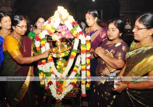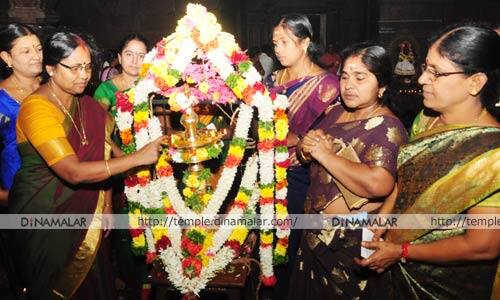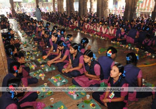 மதுரை: மதுரை தெப்பக்குளம் மரகதவல்லி சமேத முக்தீஸ்வரர் கோயிலில் 1500 மாணவிகளின் திருவிளக்கு பூஜை நடந்தது. உலக உயிர்களின் நன்மைக்காகவும், கல்வி அறிவு பெருகவும் நடந்த இந்த விளக்கு பூஜை, மீனாட்சி சுந்தரேஸ்வரர் பெண்கள் மேல்நிலைப்பள்ளி மாணவிகளால் 1980ம் ஆண்டு முதல் நடத்தப்பட்டு வருகிறது. வெள்ளியை முன்னிட்டு இன்று (ஜன.27ல்) நடைபெற்ற இந்த விளக்கு பூஜையில் சுமார் 1500ற்கும் மேற்பட்ட மாணவிகள் கலந்து கொண்டனர்.