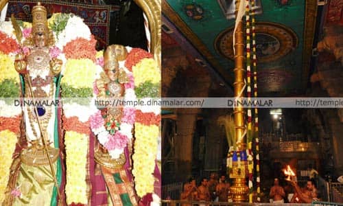 திருவிழா துவங்கும் வகையில் ஜன. 26 மாலை கம்பத்தடி மண்டபத்தில் எழுந்தருளியுள்ள அனுக்ஞை விநாயகர் முன்பு அனுக்ஞை, வாஸ்து சாந்தி பூஜைகள் நடந்தது. காலை திருவாட்சி மண்டபத்தில் விநாயகர், சீவிலி நாயகர் முன்பு ரிஷப யாகம் முடிந்து சுப்பிரமணிய சுவாமி, தெய்வானை சர்வ அலங்காரத்தில் கொடிக்கம்பம் முன்பு எழுந்தருளினர். சிவாச்சார்யார்களால் கொடியேற்றப்பட்டு, தர்ப்பை புல், மா இலை வைத்து பட்டு துணியால் சுற்றி மாலை அணிவிக்கப்பட்டது. கொடிக்கம்பத்தின் அடிப்பாகத்தில் பல்வகை திரவிய அபிஷேகங்கள் நடந்தன. திருவிழா நம்பியார் ஷண்முகசுந்தரம் சிவாச்சார்யாருக்கு பரிவட்டம் கட்டி மரியாதை செய்யப்பட்டது. கோயில் துணை கமிஷனர் செல்லத்துரை, பேஷ்கார் புகழேந்தி, மணியம் கண்ணன், பணியாளர்கள் பங்கேற்றனர்.