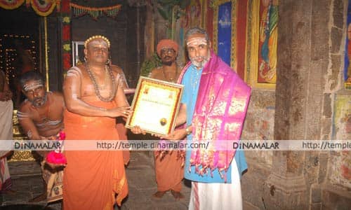 திருவாவடுதுறை: திருவாவடுதுறை ஆதீன குருமுதல்வர் நமசிவாயமூர்த்திகள் மகரத் தலைநாள் (தை அசுவதி) குருபூஜை விழாவில் ஆன்மிக எழுத்தாளருக்கு விருது வழங்கப்பட்டது. இந்த விழா ஜன. 25ல் துவங்கியது. பத்து நாள் நடக்கும் விழாவில், பிப். 3ல் குருபூஜையும், சிறப்பு அபிஷேக ஆராதனைகளும் நடக்கிறது. முதல்நாள் விழாவில், ஆன்மிக எழுத்தாளர் பி. சுவாமிநாதனுக்கு ‘செந்தமிழ் கலாநிதி’ விருதை ஆதீனத்தின் 24-வது குருமகா சந்நிதானம் ஸ்ரீலஸ்ரீ அம்பலவாண தேசிக பரமாசாரிய சுவாமிகள் வழங்கினார். பொற்கிழி ரூபாய் 5 ஆயிரம் வழங்கப்பட்டது.
