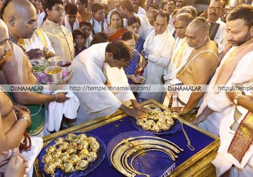தொடரும் காணிக்கைகள் : தெலுங்கானா புதிய மாநிலம், 2014ல் உருவான பின், அதன் முதல் முதல்வராக சந்திரசேகர ராவ் பதவியேற்றார். அதன்பின், 2016 அக்டோபரில், வாரங்கலில் உள்ள பத்ரகாளி கோவிலுக்கு, 3.65 கோடி ரூபாய் மதிப்புள்ள, 11 கிலோ, 700 கிராம் எடையுள்ள தங்க கிரீடத்தை காணிக்கையாக செலுத்தினார். திருப்பதி வெங்கடேஸ்வரா கோவிலுக்கு, தங்க கிரீடம், நெக்லஸ் ஆகியவற்றையும், விஜயவாடா கனகதுர்கா அம்மனுக்கு, தங்க மூக்குத்தியும் காணிக்கையாக அவர் செலுத்தினார்.