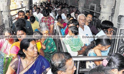 காஞ்சிபுரம்: காமாட்சி அம்மன் கோவிலில் கும்பாபிஷேகம் முடிந்து, மண்டலாபிஷேகம் நடந்து வருவதால், வழக்கத்தை விட பக்தர்கள் கூட்டம் அதிகமாக காணப்படுகிறது. உலகளவில் பிரசித்தி பெற்று விளங்கும் காஞ்சிபுரம் காமாட்சி அம்மன் கோவில் கும்பாபிஷேகம் கடந்த மாதம், 9ம் தேதி கோலாகலமாக நடைபெற்றது. கும்பாபிஷேகத்திற்கு பல லட்சம் பக்தர்கள் கலந்து கொள்வர் என, எதிர்பாக்கப்பட்டன. நெரிசலை தவிர்க்கும் வகையில், கூட்டம் எதிர்பார்த்த அளவில் வரவில்லை. அதனால் கும்பாபிஷேகம் முடிந்து, 48 நாட்கள் நடக்கும் மண்டலாபிஷேகத்தில் சுவாமி தரிசனம் செய்தால் நல்லது என, பக்தர்கள் கருதி அதிகம் வருகின்றனர். வழக்கம்போல் தரிசனம் காலை , 5:30 மணி முதல், 12:30 வரையிலும், மாலை , 4:00 முதல் இரவு, 8:00 மணி வரையிலும் தினசரி வழிபாடு நடந்து வருகிறது. கும்பாபஷேகத்தில் கலந்து கொள்ள முடியாதவர்கள், இப்போது வருவதால் வழக்கத்தை விட கூட்டம் அதிகம் காணப்படுகிறது. வரும், 30ம் தே தி வரை மண்டலாபிஷேக பூஜை நடைபெறுகிறது. அது வரை பக்தர்கள் கூட்டம் இருக்கும் என, கூறப்படுகிறது. பக்தர்கள் அனைவருக்கும் இலவச பொது தரிசனம். வி.ஐ.பி.,க்க ளுக்கு மட்டும் சிறப்பு அனுமதி அளிக்க ப்படுகிறது.