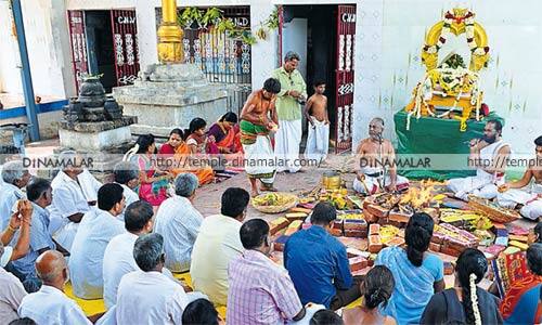 ஆர்.கே.பேட்டை: ஒரே கல்லில் வடிக்கப்பட்ட சக்கரத்தாழ்வார் மற்றும் யோக நரசிம்ம பெருமாள் கோவிலில், நேற்று காலை, சுதர்சன யாகம் நடந்தது. ஆர்.கே .பே ட்டை அடுத்த, வங்கனுாரில் உள்ளது அஷ்டலட்சுமி உடனுறை நாராயண பெருமாள் கோவில். 2015,நவ ., 18ம் தே தி, கும்பாபிஷேகம் நடத்தப்பட்டது. மேலும், அதே க�ோ வில் வளாகத்தில், புதிதாக நிர்மாணம் செய்யப்பட்டசக்கரத்தாழ்வார் மற்றும் யோக நரசிம்மபெருமாள் சன்னிதிக்கும் கும்பாபிஷேகம் நடந்தது. மாவட்டத்தில், வேறு எங்கும் இல்லாதவிதமாக, இந்த சன்னிதியில், ஒரே கல்லில், ஒருபுறம் சக்கரத்தாழ்வார் சிலையும், மறுபுறம் யோக நரசிம்ம பெருமாள் சுவாமியும் அருள்பாலிக்கின்றனர். சக்கரத்தாழ்வார் கிழக்கு நோக்கியும், யோக நரசிம்மர் மேற்கு நோக்கியும் வீற்றிருக்கின்றனர். சக்கரத்தாழ்வார், 16 கரங்களில்,16 விதமான ஆயுதங்களை ஏந்தியுள்ளார். ஒவ்வொன்றுக்கும் தனிச்சிறப்பு உண்டு. கும்பாபிஷேகம் நடந்து, ஓராண்டு நிறைவடைந்ததையொட்டி, நேற்று,காலை, 10:00 மணிக்கு சுதர்சன யாகம் நடந்தது. 11:00 மணியளவில், உற்சவர் அர்த்தமண்டபத்தில் எழுந்தருளி,பக்தர்களுக்கு அருள்பாலித்தார்.