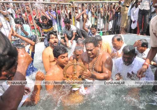 விழாவில் உண்ணாமுலையம்மன் சமேதரராய் அண்ணாமலையார் தீர்த்தவாரி மண்டபத்தில் எழுந்தருளி பக்தர்களுக்கு அருள்பாலித்தார். இதில் ஏராளமான பக்தர்கள் ஸ்வாமி தரிசனம் செய்தனர். நதிக்கரையில் பலத்த பாதுகாப்புடன் தடுப்புகள் அமைக்கப்பட்ட பகுதிகளில் மட்டுமே பக்தர்களை போலீஸார் அனுமதித்தனர். இதில் முன்னோர்களுக்கு தர்ப்பணம் கொடுத்து, புனிதநீராடி ஏராளமான பக்தர்கள் வழிபாடு செய்தனர்.